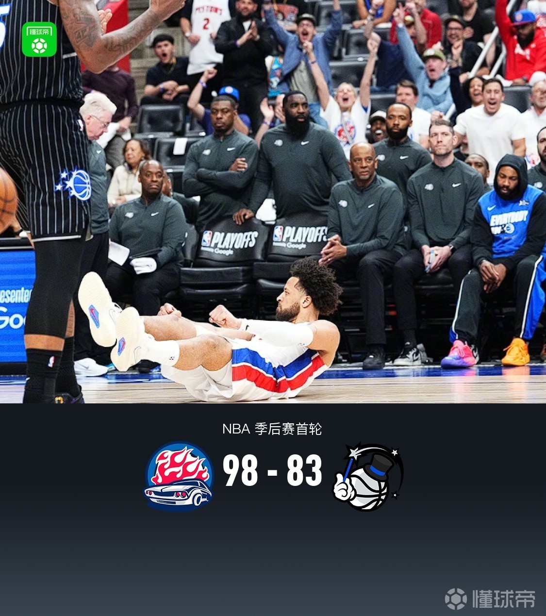 北京时间4月23日NBA 季后赛首轮G2,底特律活塞对阵奥兰多魔术。上半场持续拉锯紧咬比分,半场活塞46-46魔术,第三节活塞轰出38-16彻底拉大分差,末节魔术反扑无果,最终活塞98-83魔术,大比分1-1扳平。