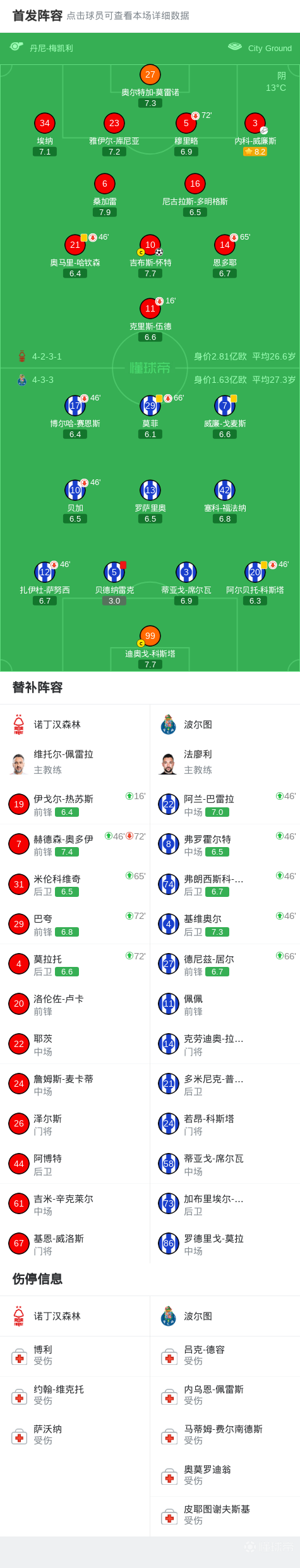 森林两回合2-1波尔图晋级,吉布斯-怀特制胜,贝德纳雷克染红