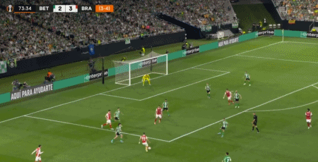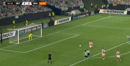 第53分钟,特克纳兹造点,奥尔塔点球命中将比分反超,布拉加3-2贝蒂斯